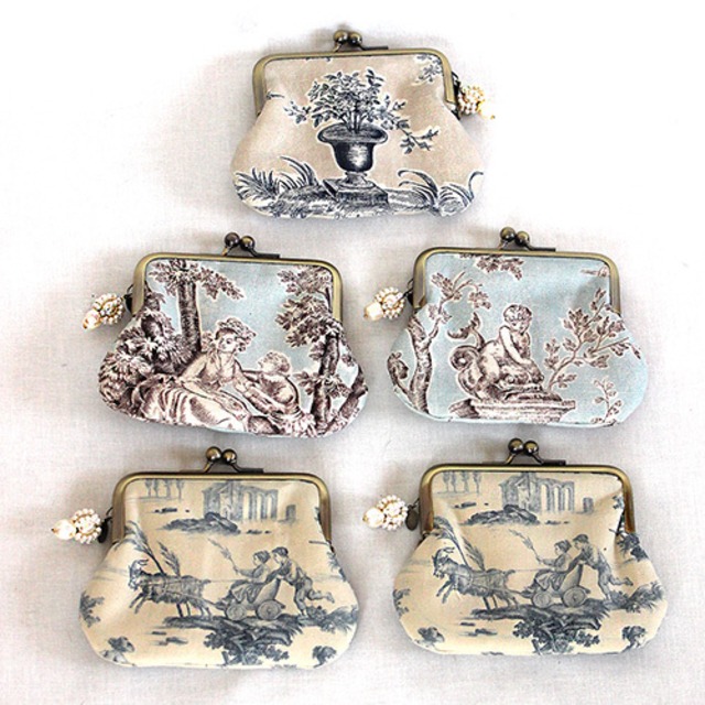 トワル・ド・ジュイ布のスワロフスキー飾りポーチ Bタイプ