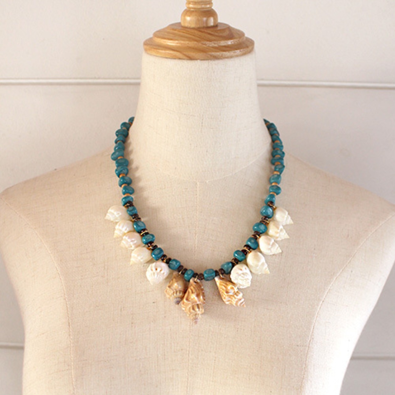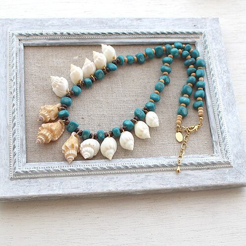 トルコ石と貝のシンプル夏ネックレス