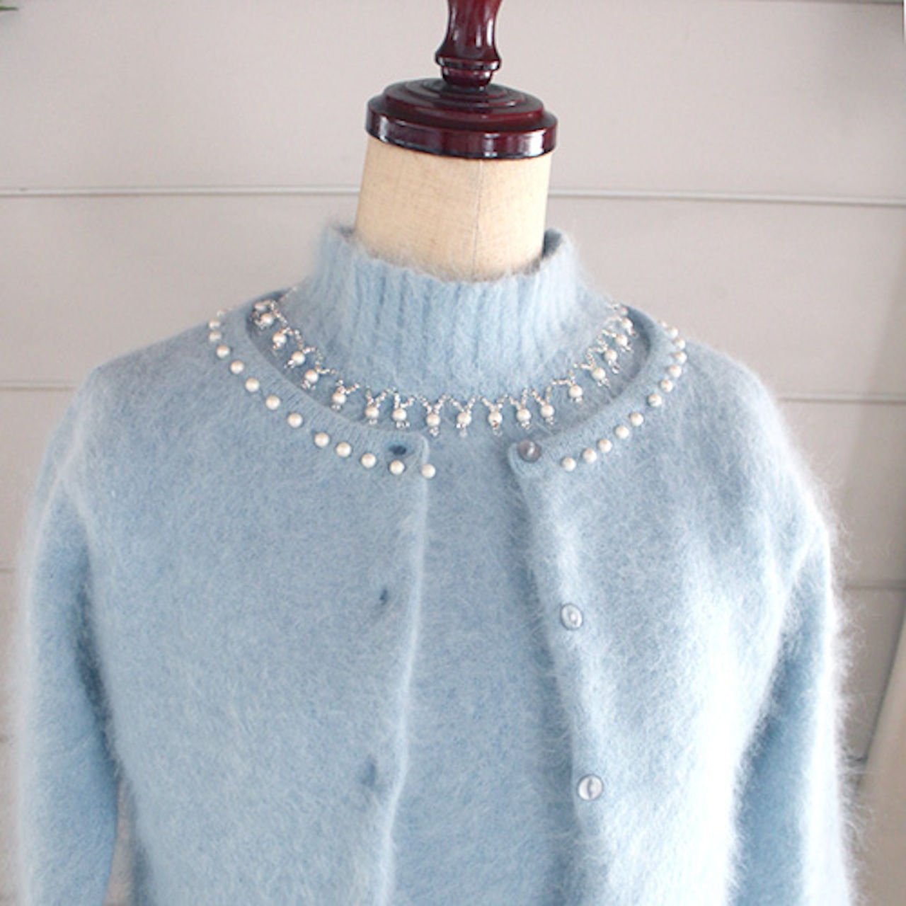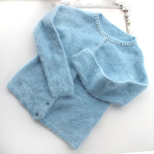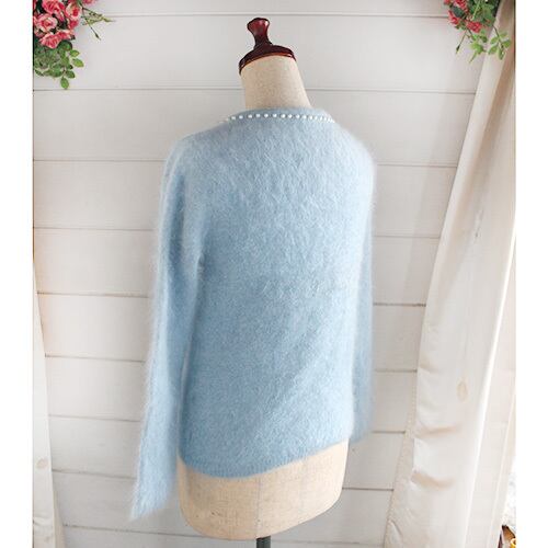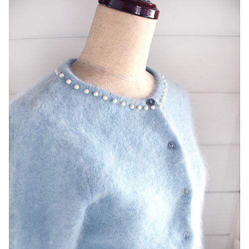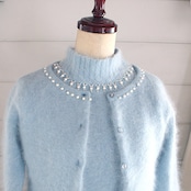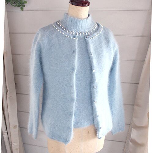 綺麗なアイスブルー色のアンゴラ素材のカーディガン