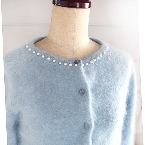 アイスブルーのビーズ刺繍カーディガン