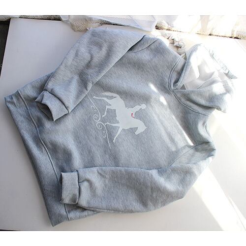 白い乗馬柄のグレー色のパーカー