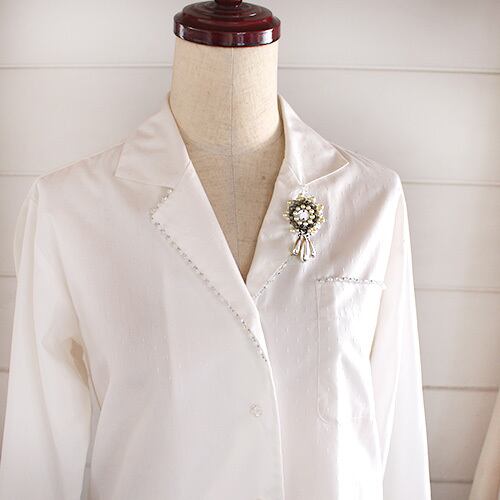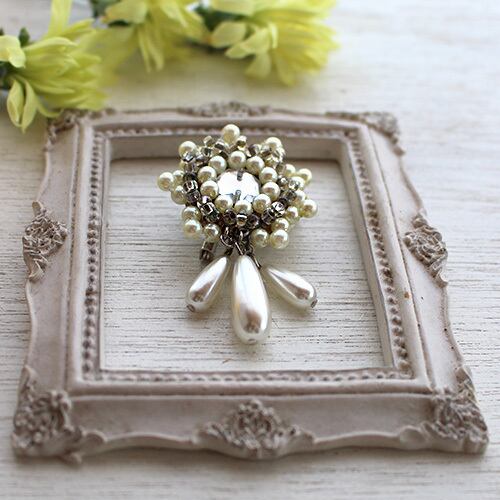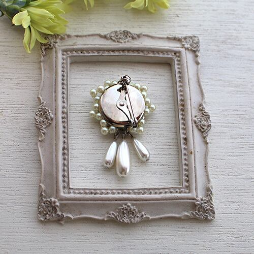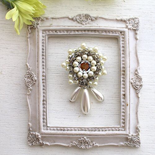 白い花にフリンジを加えたブローチです。