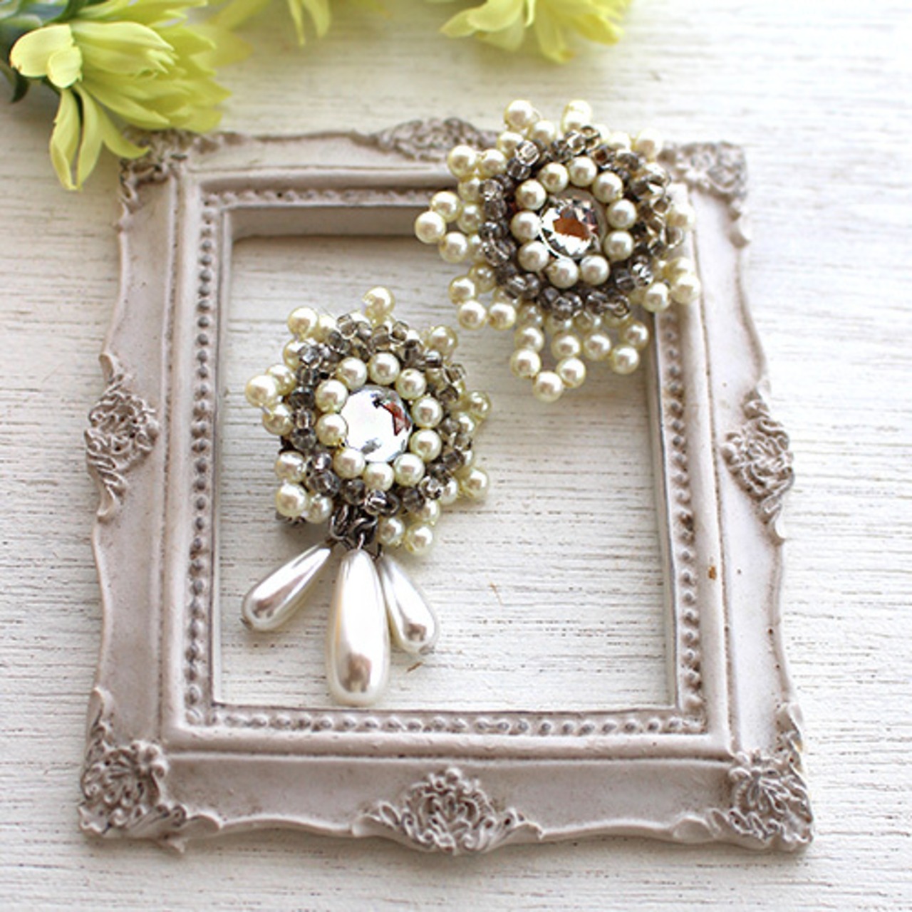 白い花のフリンジブローチ