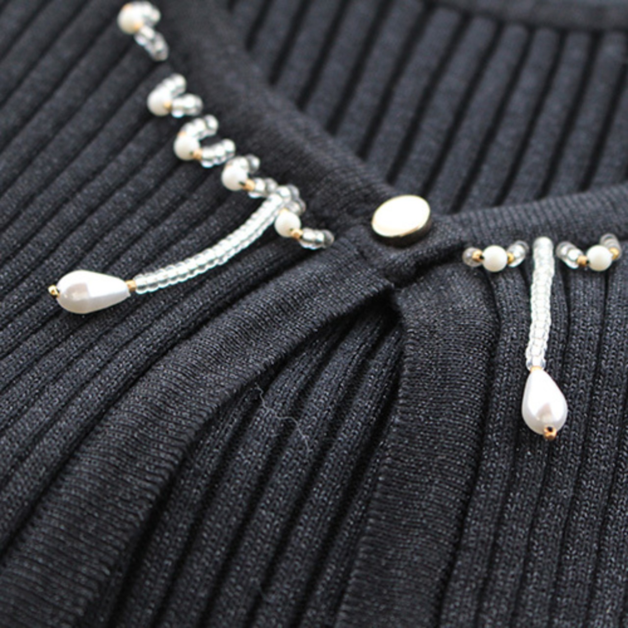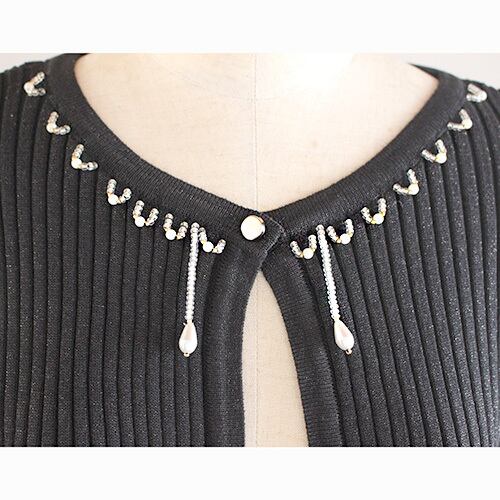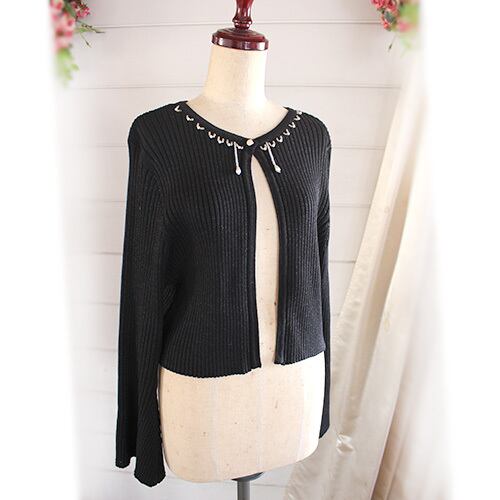 首元のビーズ飾りとフレアの袖 黒タイプ