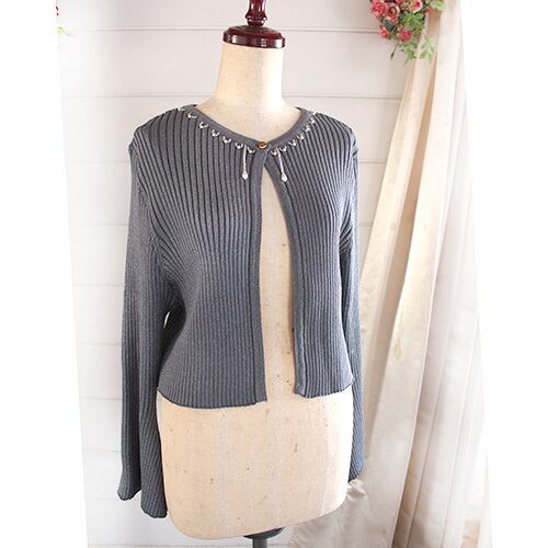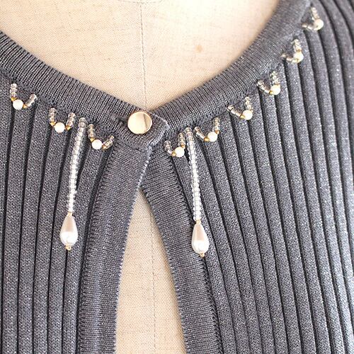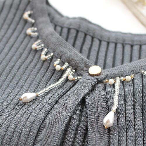 首元のビーズ飾りとフレアの袖 グレータイプ