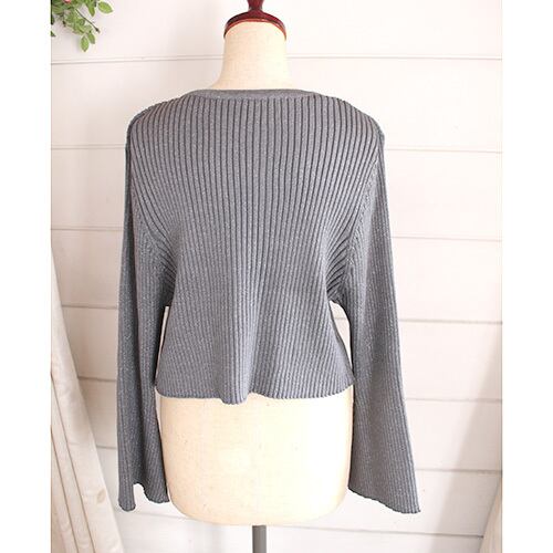 ほのかに輝くラメを編み込んだグレーのニットに