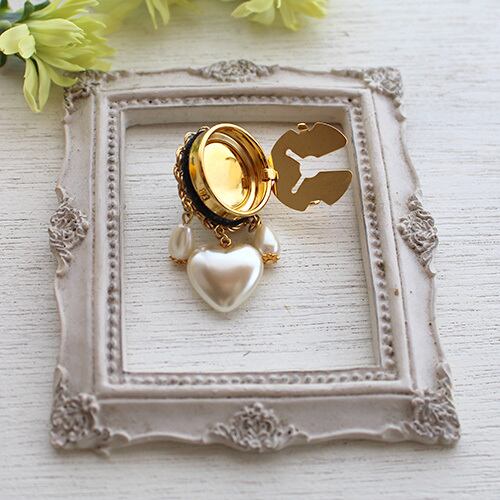 白いハートがポイントのボタンカバーです。