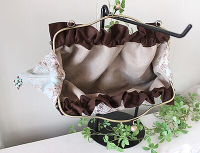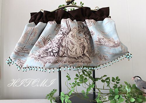 底の部分のビーズフリンジがクラシカルな柄とよく合います