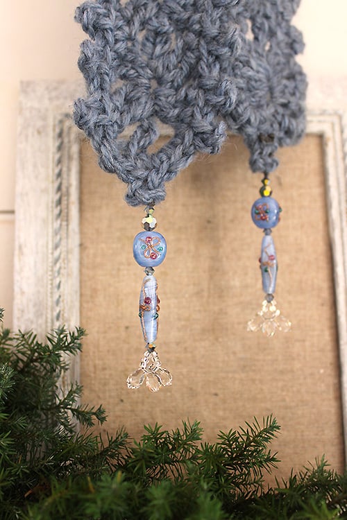 毛糸と同色のガラス素材の輸入ビーズがポイントです