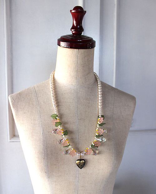 淡い色合いの花とリーフのパーツが
