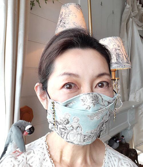 リネン素材のトワル・ド・ジュイ布のマスクです。