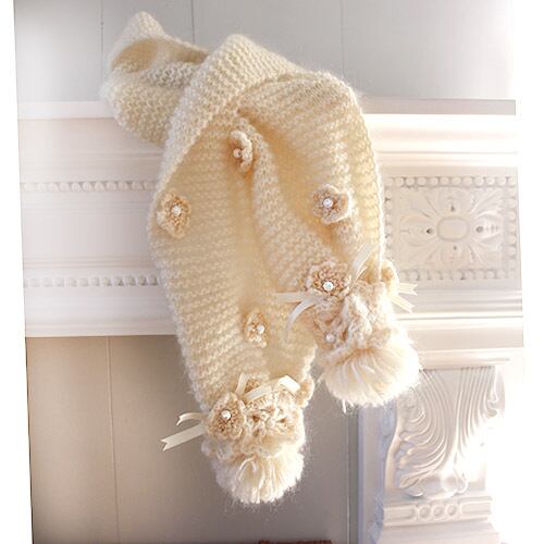 白いモヘアの花マフラー 手編み