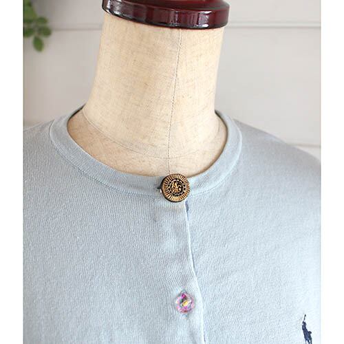 ヴィンテージのボタンをブローチのようなボタンカバーにしました。